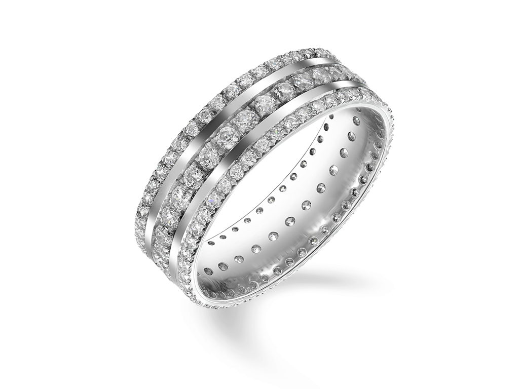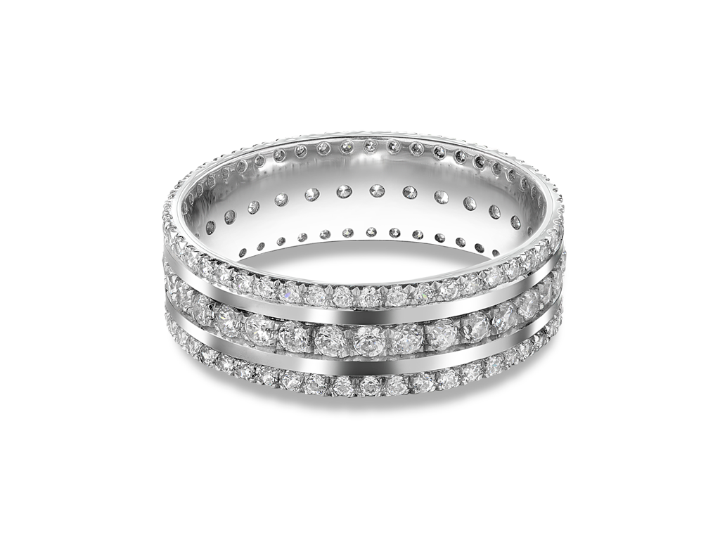 Обручальное кольцо с тремя дорожками бриллиантов